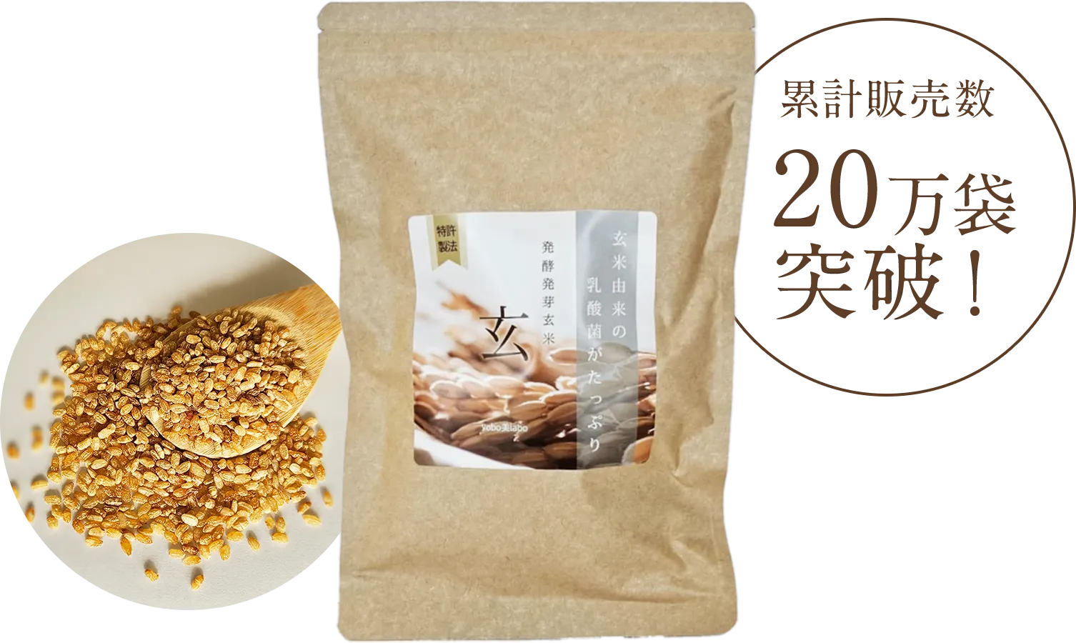 今まで玄米を発酵させることは不可能とされていました。自宅で寝かせて発酵させるという方法を行う方もいらっしゃいますが、雑菌が増えるリスクを伴うため安全とは言えません。それを特許技術により安全な方法で発酵させたものが、発酵発芽玄米の「玄」なのです。植物性乳酸菌をたっぷり含み、腸内環境の改善だけでなく肌、免疫力の向上にも役立ちます。